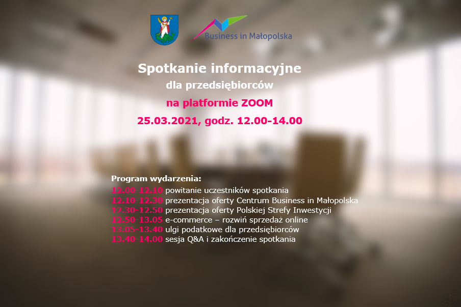 „Prezydent Miasta Nowego Sącza Ludomir Handzel oraz Centrum Business in Małopolska mają przyjemność zaprosić na spotkanie informacyjne dedykowane przedsiębiorcom, które odbędzie się 25 marca br. (czwartek) o godzinie 12.00 w formie online na platformie ZOOM.