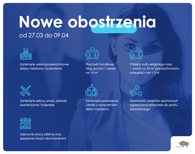 Ze względu na bezpieczeństwo dzieci i rodziców, zamknięte zostaną żłobki i przedszkola. Wyjątkiem będzie sprawowanie opieki nad dziećmi pracowników medycznych i służb porządkowych (m.in. żołnierzy, funkcjonariuszy policji i straży pożarnej).