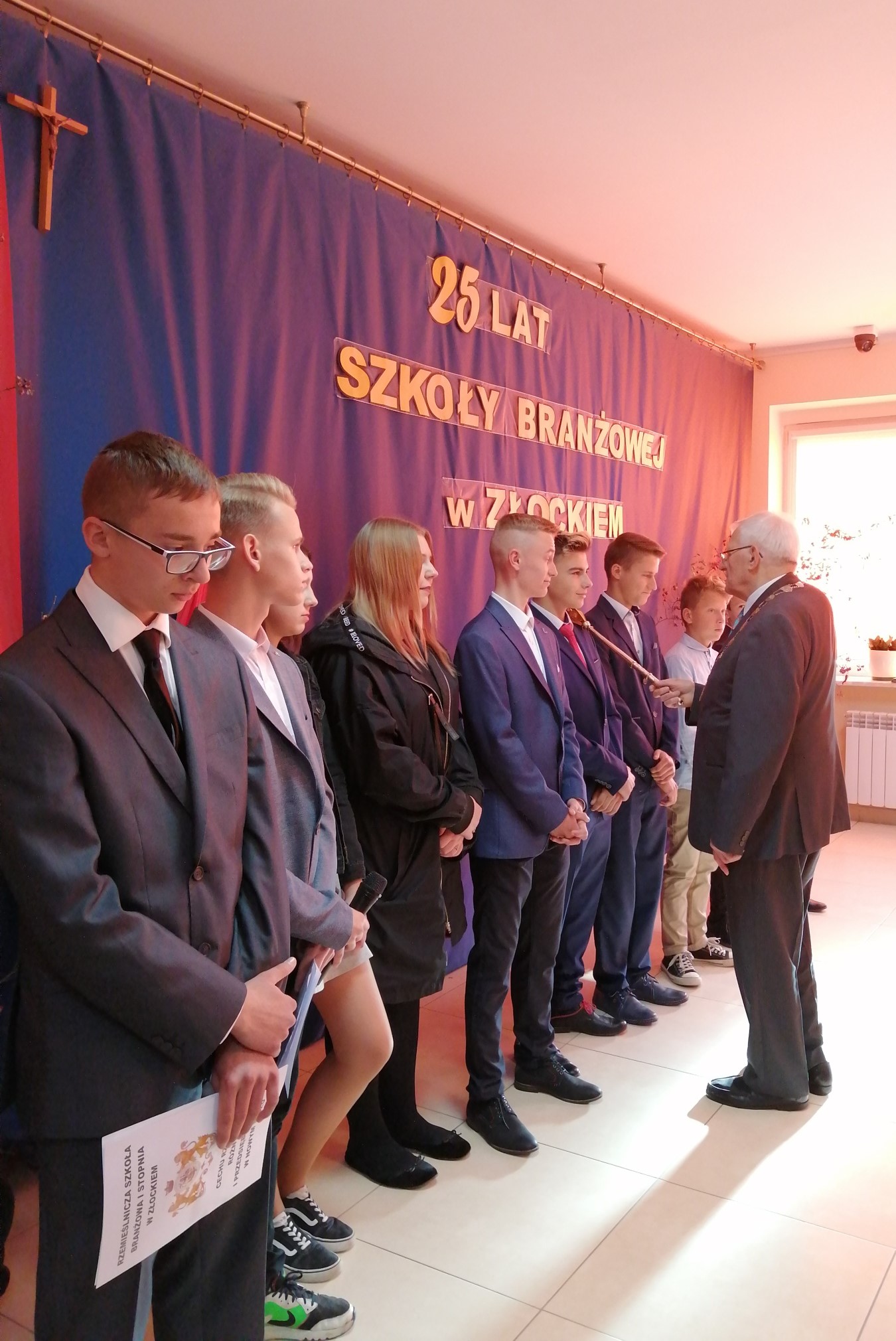 Prezes Jan First dokonał pasowania na uczniów rzemiosła, złożył władzom Szkoły, Nauczycielom, Rzemieślnikom serdeczne gratulacje i podziękowania oraz wręczył nauczycielom i pracodawcom odznaczenia rzemieślnicze.