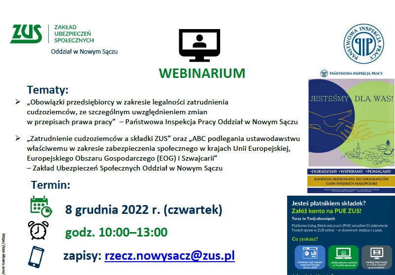 [2022-11-24] „Legalność zatrudnienia cudzoziemców” - szkolenie ZUS i PIP on-line 8.12.2022