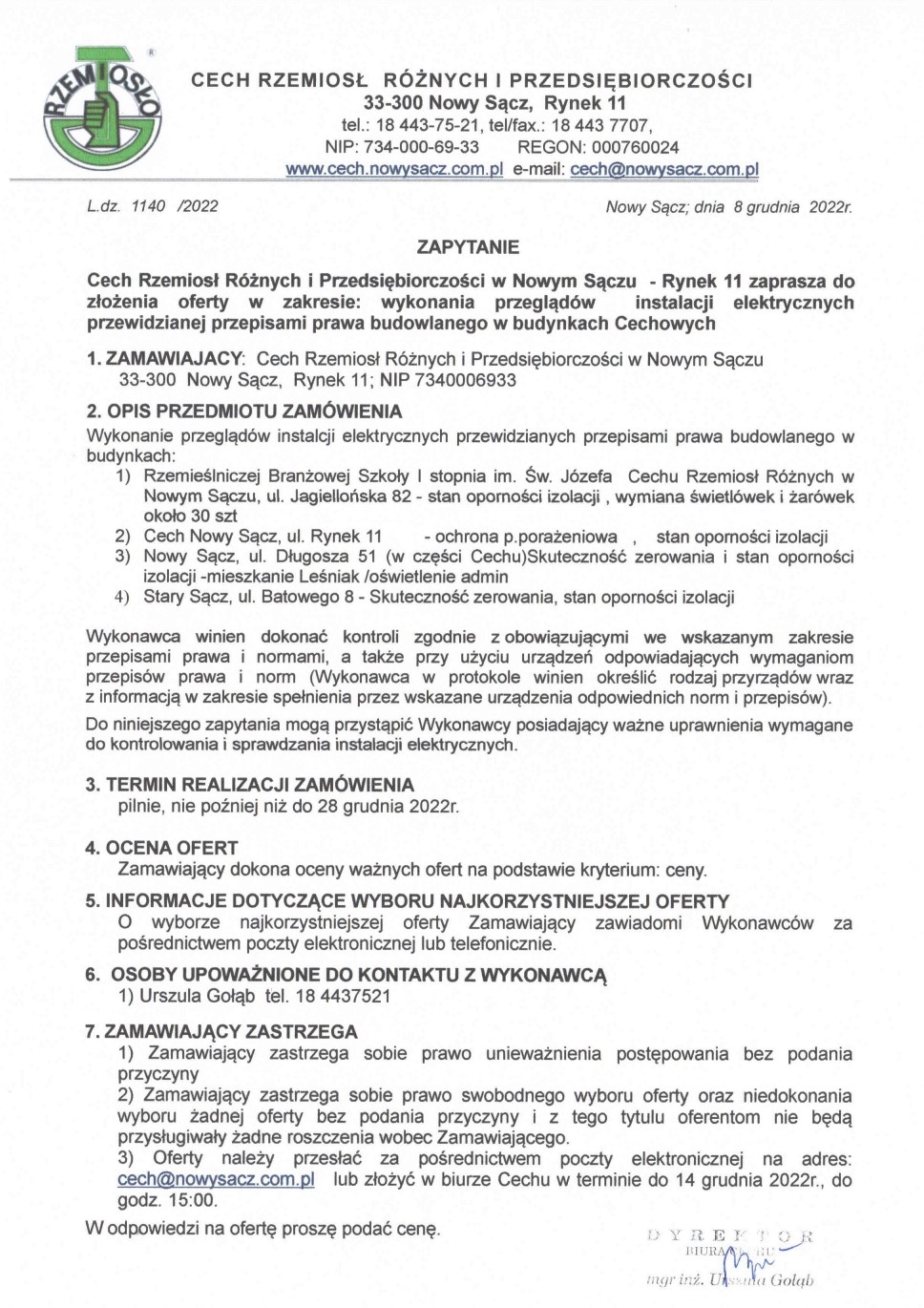 [2022-12-08] ZAPYTANIE - PRZEGLĄDY ELEKTRYCZNE